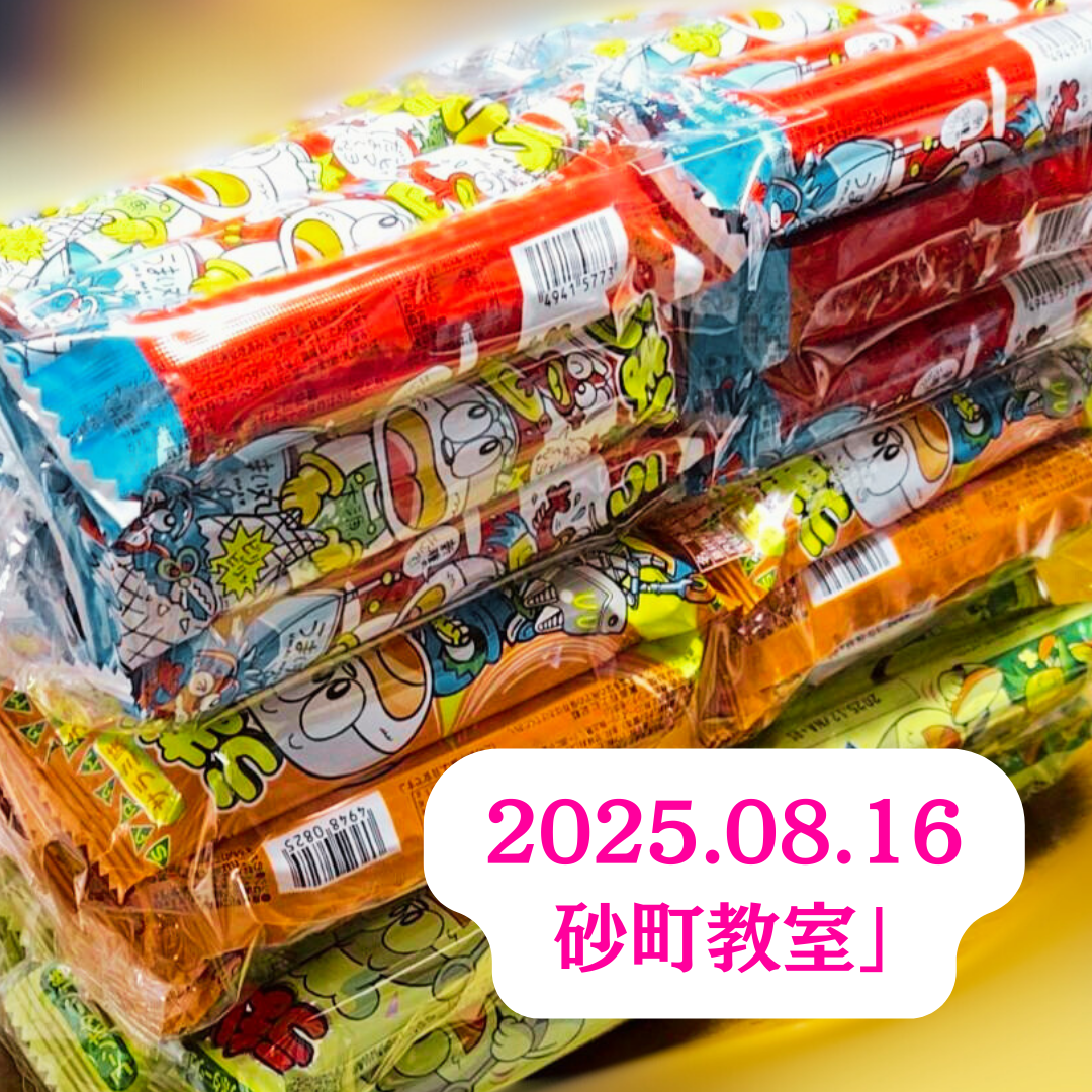 また、学習会の途中には、近所の会社の方が立ち寄ってくださり、大きな袋いっぱいの「うまい棒」を差し入れてくださいました。夏祭りで余ったものだったのか理由は伺いそびれましたが、思いがけないご厚意に子どもたちも嬉しそう。そういえば先週は、砂町教室の会場である「よっちゃん家」で子ども食堂を運営している皆さんからパンをたくさんいただいたのでした。